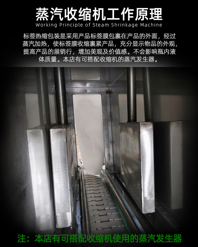 - 蒸汽的高效熱傳遞:蒸汽收縮機利用蒸汽作為熱源,蒸汽在接觸包裝材料時會發生凝結,釋放出大量的潛熱。這種潛熱的釋放使得包裝材料能夠快速吸收熱量,相比其他一些熱收縮方式(如單純的熱風收縮),熱傳遞效率更高。例如,在同等的包裝材料和產品尺寸下,蒸汽收縮機可能只需要較低的溫度和較短的時間就能達到理想的收縮效果,從而節省能源。