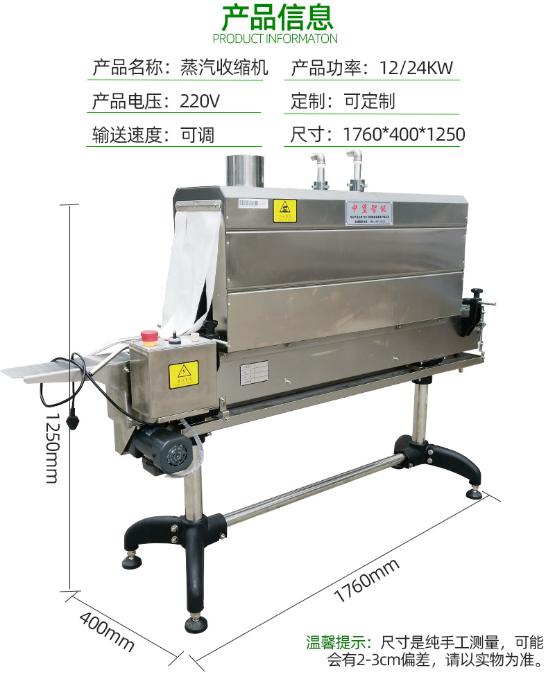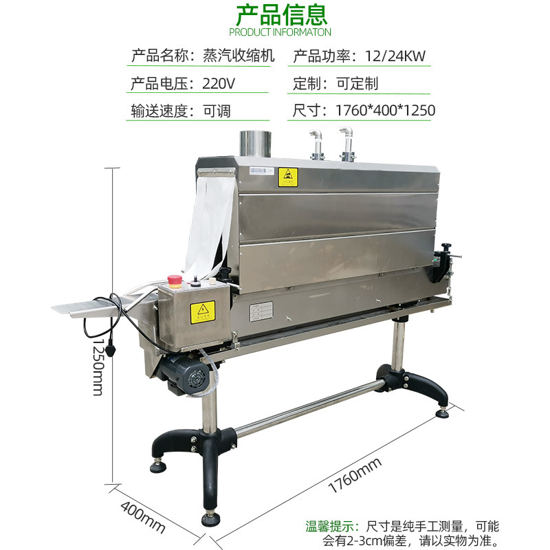 - 緊密貼合產品:蒸汽收縮機利用蒸汽的熱量使包裝材料收縮,能夠讓包裝材料緊密地貼合在產品表面。這種緊密貼合可以有效防止產品在運輸和儲存過程中受到碰撞、摩擦而損壞。例如,在五金工具的包裝中,扳手、螺絲刀等工具被蒸汽收縮包裝后,包裝材料就像一層 “貼身鎧甲”,大大降低了工具之間相互碰撞的可能性。