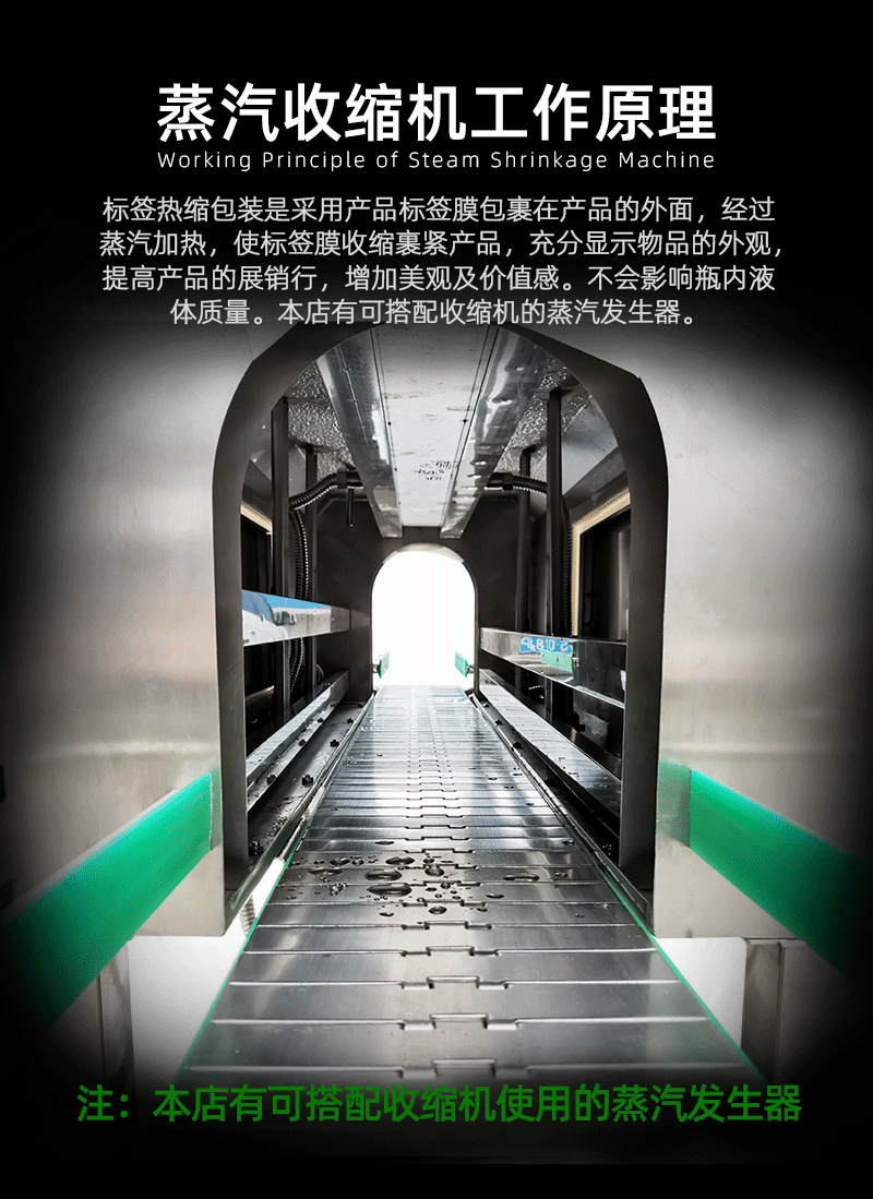 - 收縮通道清潔:收縮通道內的蒸汽噴頭和通風口需要定期清理。蒸汽噴頭堵塞會影響蒸汽的均勻分布,導致收縮效果不佳。可以使用軟毛刷或壓縮空氣來清理噴頭,去除可能堵塞噴頭的雜質。通風口堵塞會影響空氣流通,不利于包裝材料的冷卻定型,因此也要定期檢查和清理通風口。
