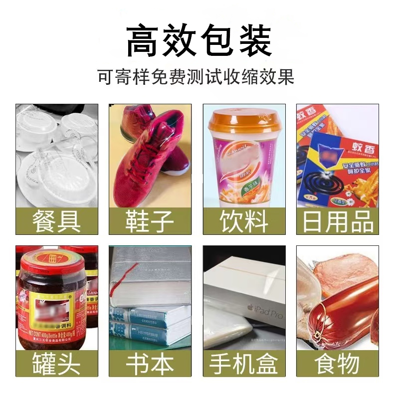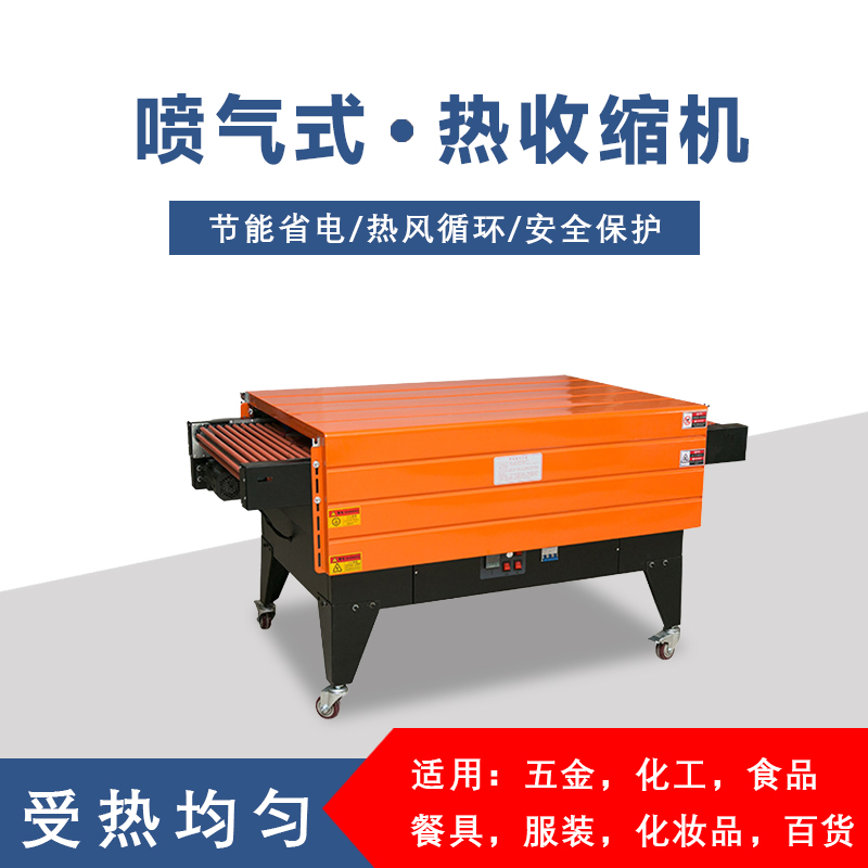 - 薄膜類型適應性強:可以適應多種不同類型的熱收縮薄膜,包括 PVC(聚氯乙烯)、POF(聚烯烴)、PE(聚乙烯)等。不同的薄膜材料有不同的物理和化學特性,如收縮溫度、收縮率、柔韌性等。噴氣式收縮機可以根據這些特性靈活調整溫度和噴氣參數,以實現最佳的收縮效果。例如,POF 薄膜通常具有較高的透明度和韌性,適用于高檔產品的包裝,噴氣式收縮機可以精準控制溫度和噴氣方式,充分發揮 POF 薄膜的優勢。
