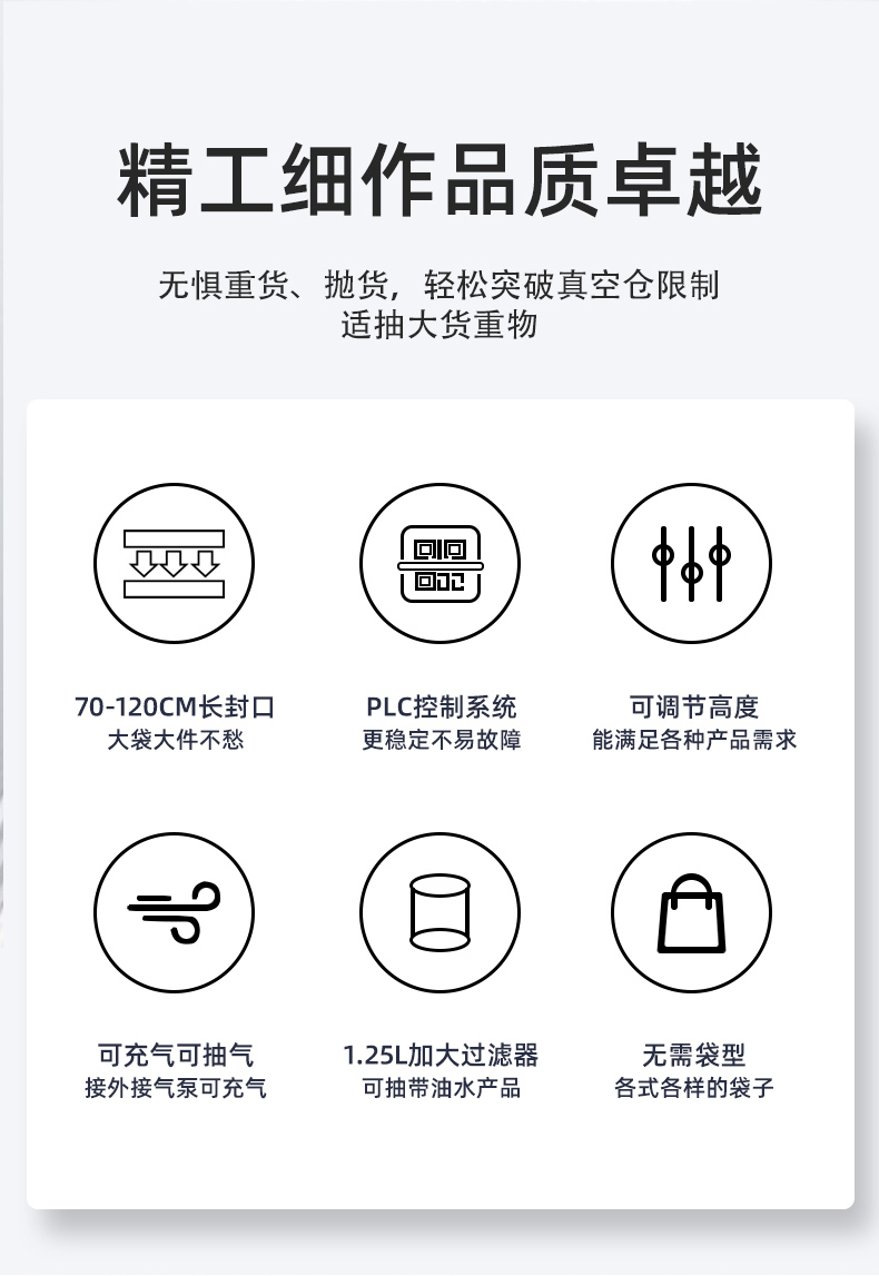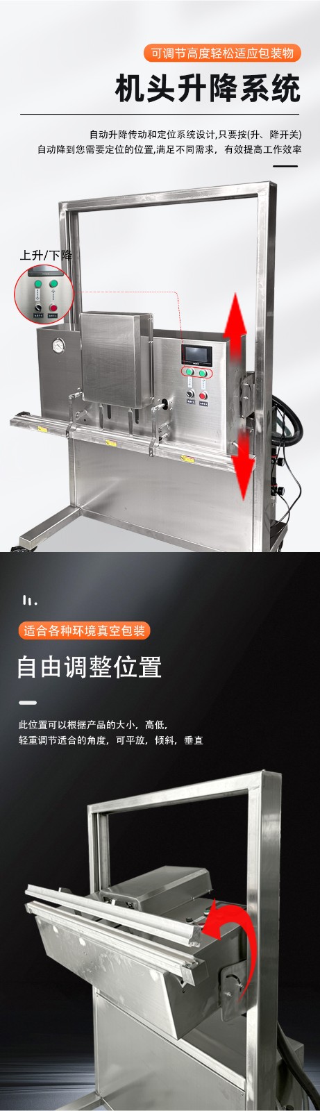 立式升降真空包裝機滿足大尺寸、重重量、異形產品或多品類小批量生產的真空包裝需求
