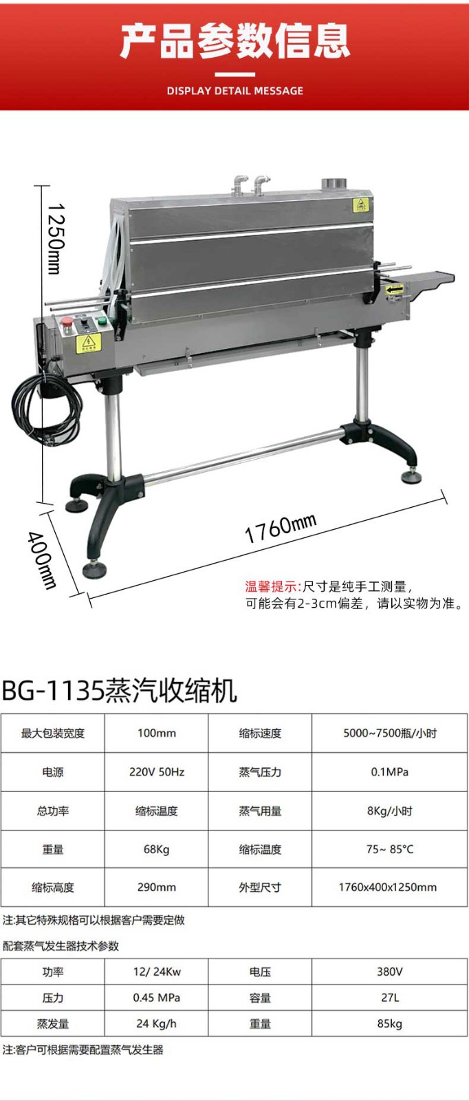 蒸汽收縮機蒸汽具有良好的熱傳導性和擴散性收縮后的包裝外觀平整光滑