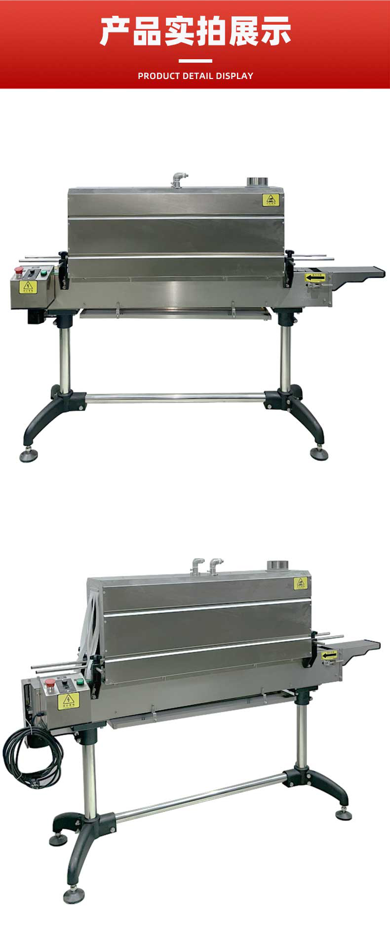 • 收縮通道:內部設有蒸汽噴射孔或噴嘴,通道長度與寬度根據產品尺寸可調,確保蒸汽均勻覆蓋。