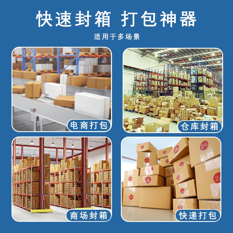 • 包裝效果好:突破傳統(tǒng)貼帶器設(shè)計(jì),封箱密合,膠帶撫平效果好,絕不跳帶,紙箱兩端封箱膠帶折角長(zhǎng)度可定制。