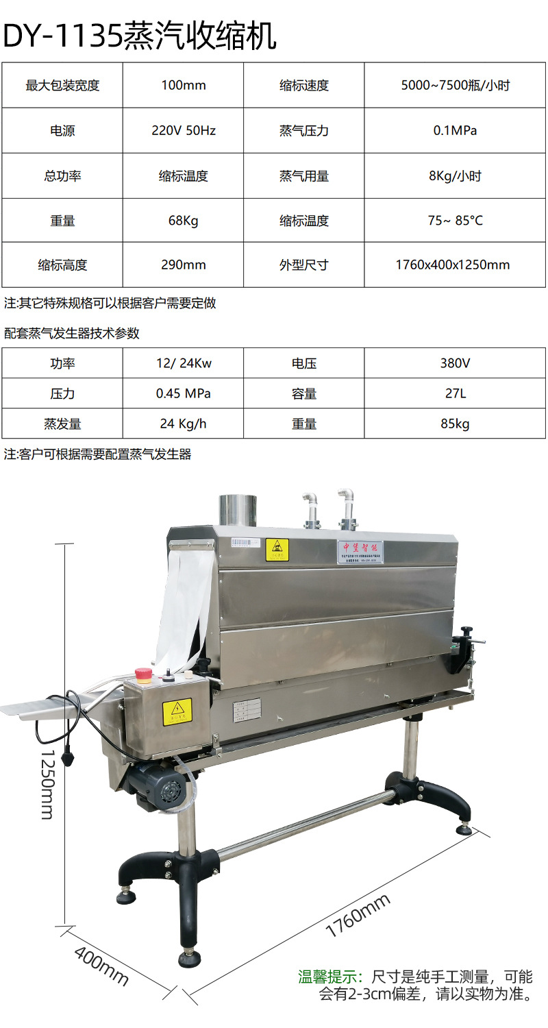 • 能夠精確控制收縮程度。通過調節蒸汽的溫度、壓力和產品在收縮通道中的輸送速度,可以根據不同的包裝薄膜材料和產品要求,實現不同程度的收縮,滿足多樣化的包裝需求。