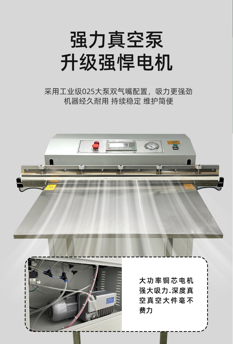 - 啟動機器后,氣動系統控制抽氣閥門打開,真空泵開始工作。真空泵通過抽氣管道將包裝袋內的空氣抽出,隨著空氣的不斷抽出,包裝內的氣壓逐漸降低。這個過程中,機器的真空表會實時顯示包裝內的真空度,直到達到預設的真空度。