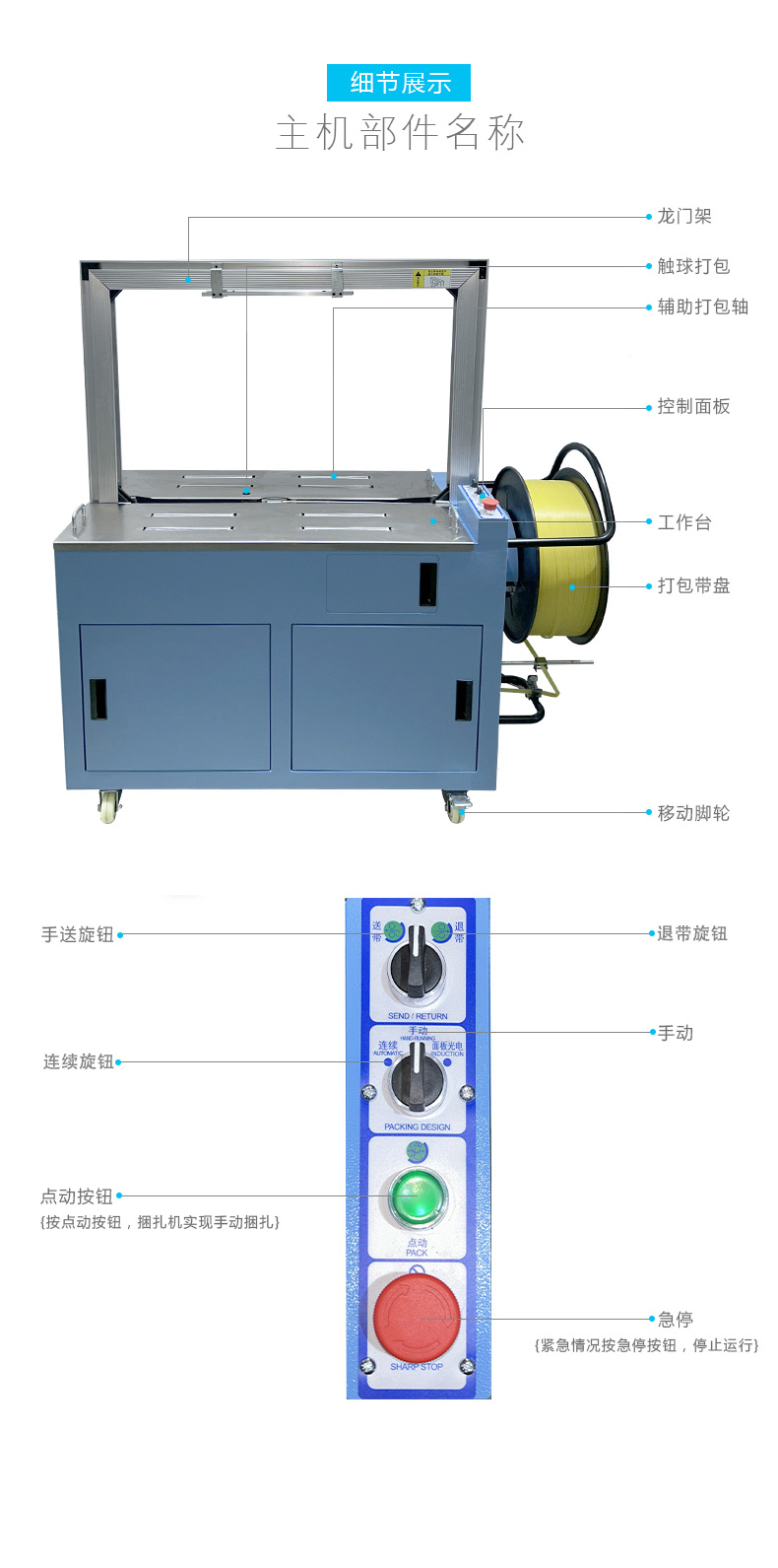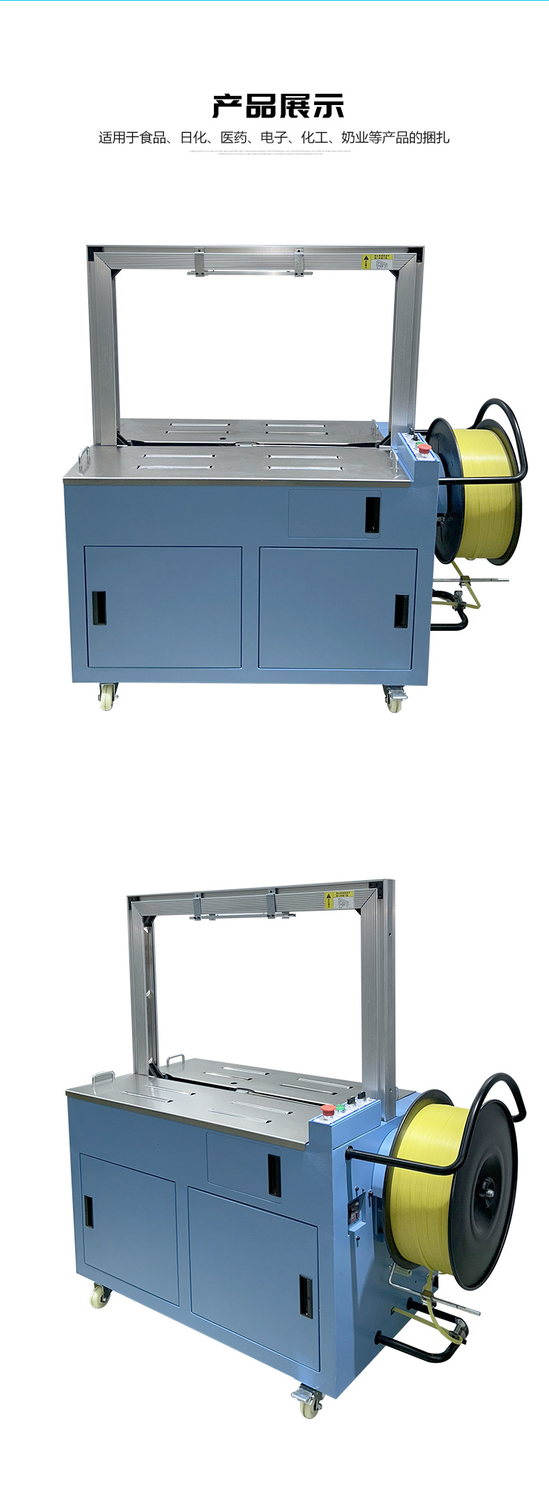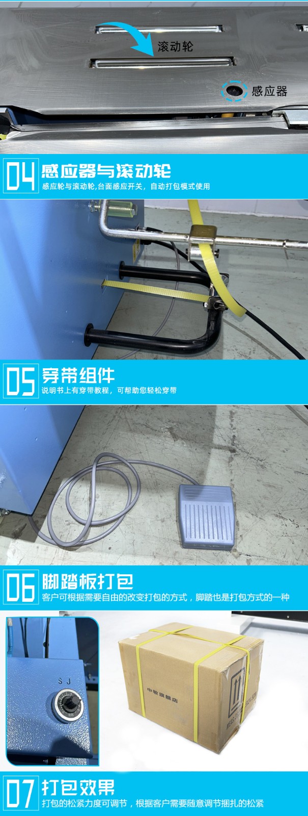 • 自動上帶:機器啟動后,會自動從打包帶卷中抽出打包帶,并將其傳送到預定的位置,準備進行打包。這個過程無需人工干預,大大提高了工作效率。