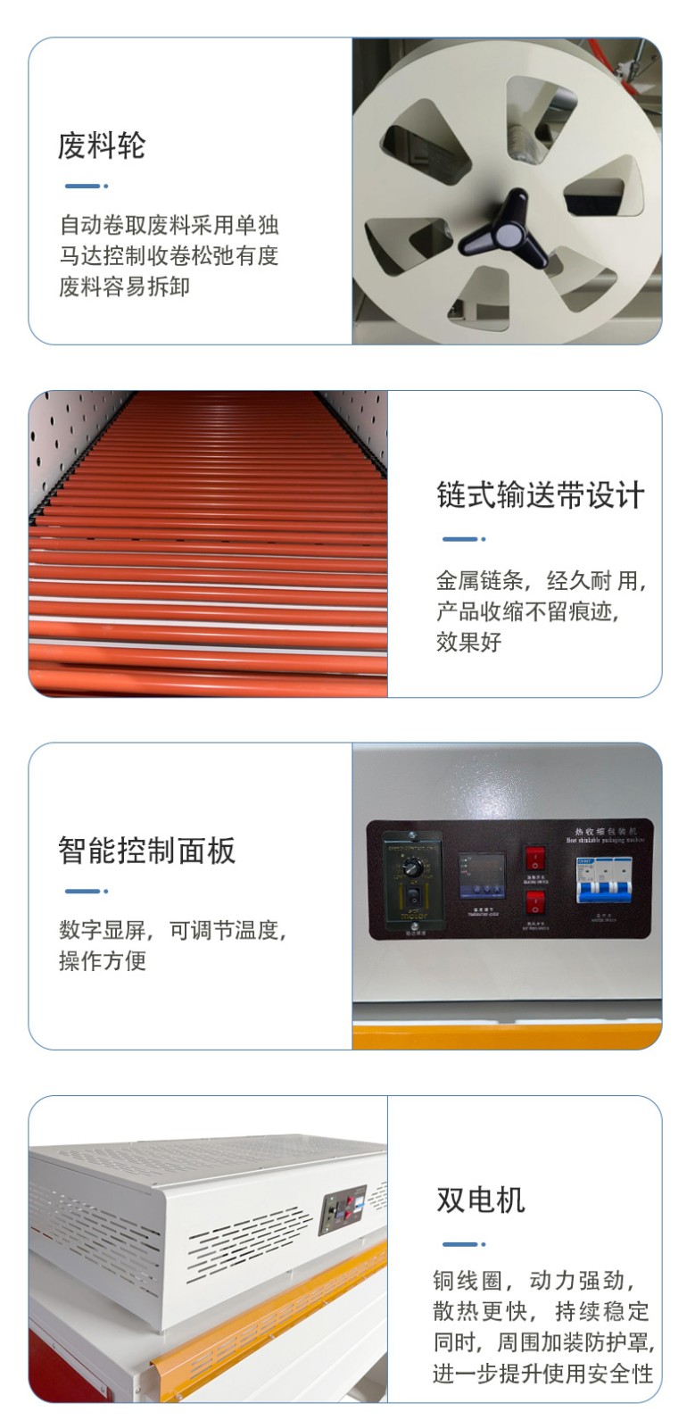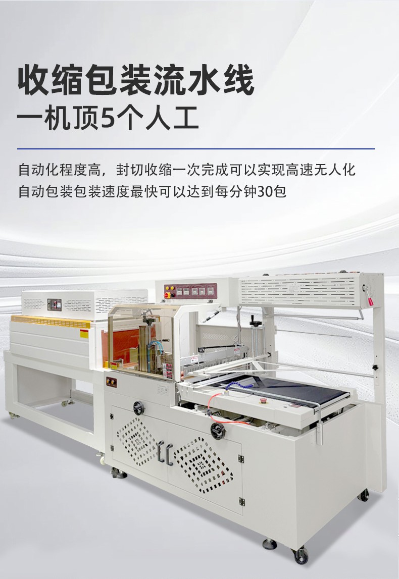 - 適用范圍廣4:邊封設(shè)計(jì)的包裝機(jī)可包裝長(zhǎng)度不限的產(chǎn)品,通過(guò)調(diào)整還能適應(yīng)不同寬度、高度的產(chǎn)品包裝,可用于 POF、PVC 等多種熱收縮膜,能滿(mǎn)足食品、電子、醫(yī)藥、日化等多個(gè)行業(yè)的包裝需求。