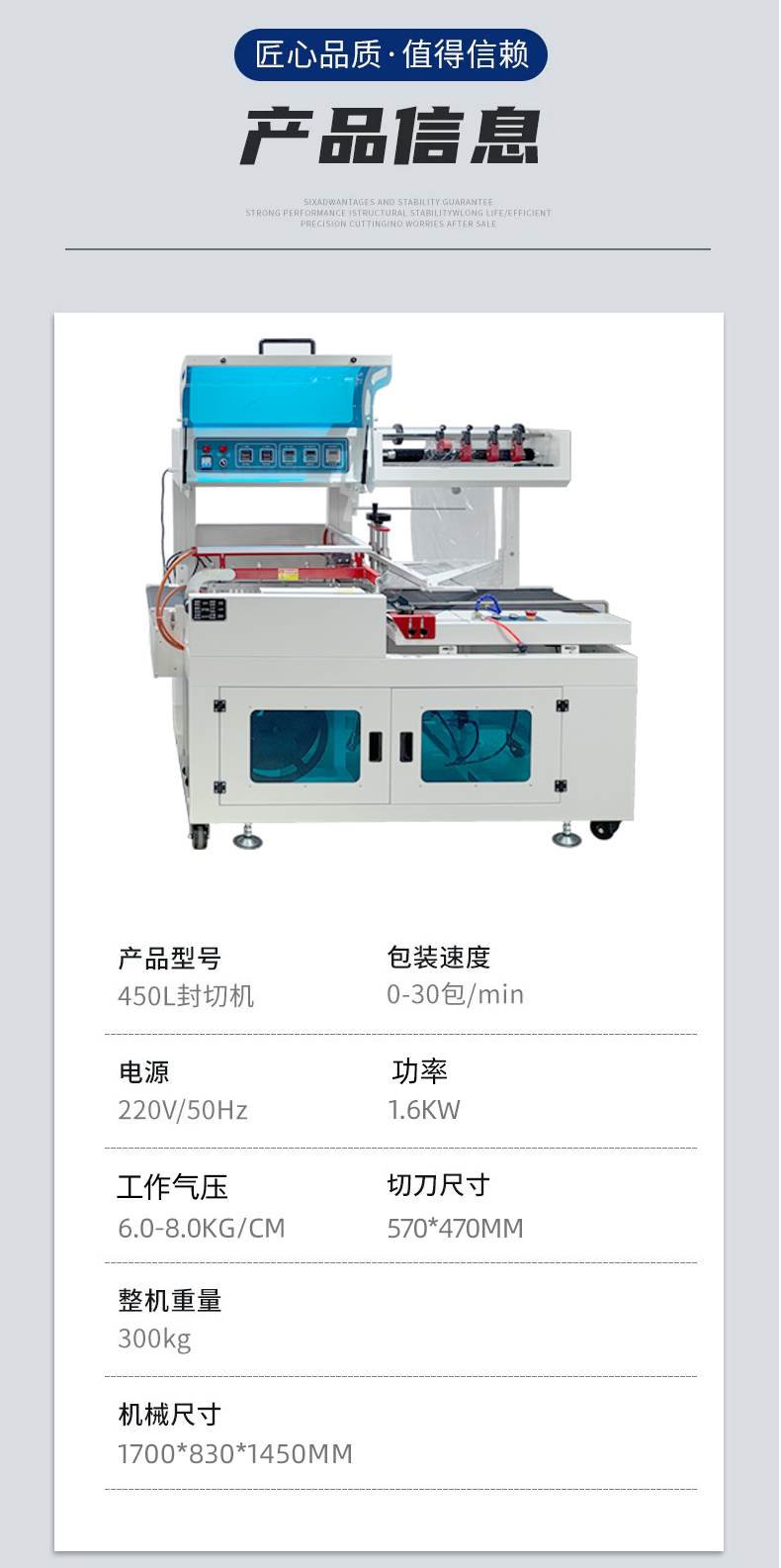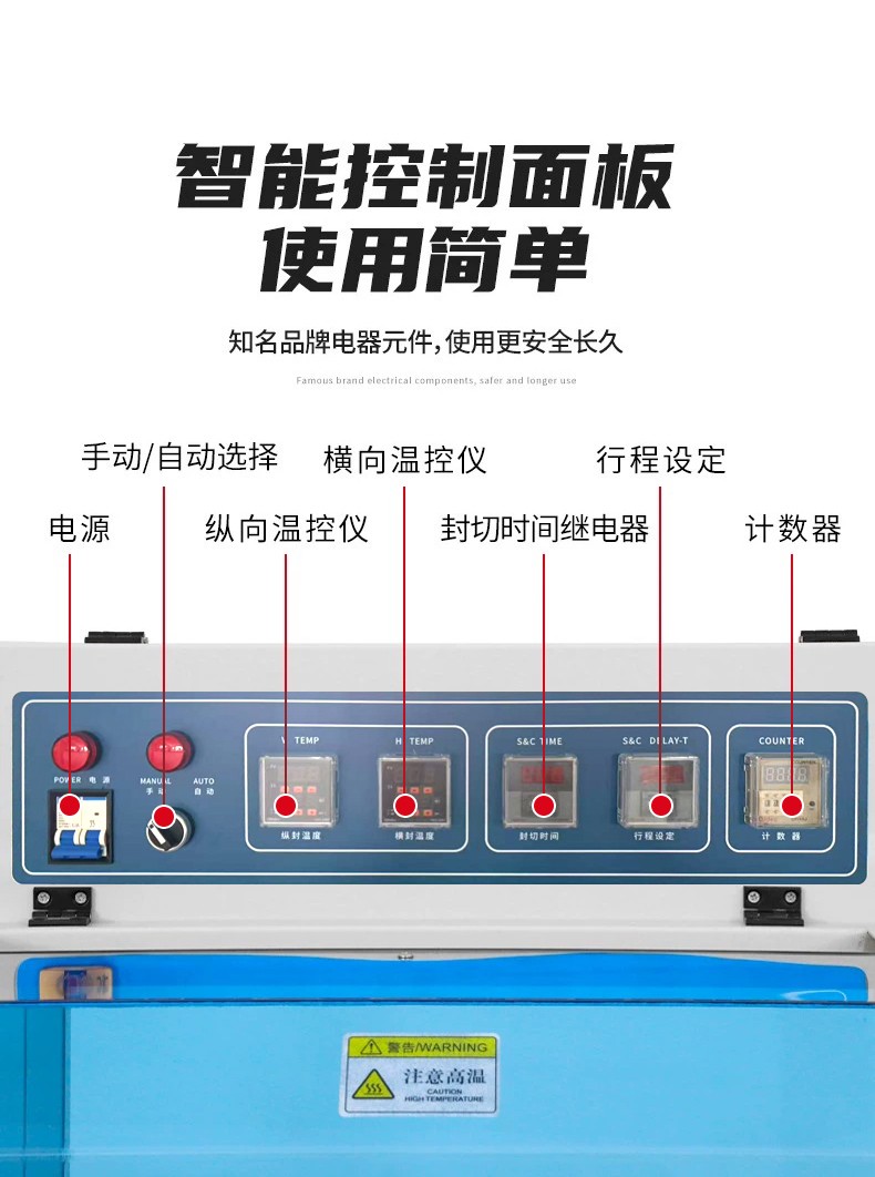 - 核心部件(如封切刀、輸送帶)均為模塊化設計,拆卸更換方便,日常維護僅需清理廢膜、檢查加熱管即可。