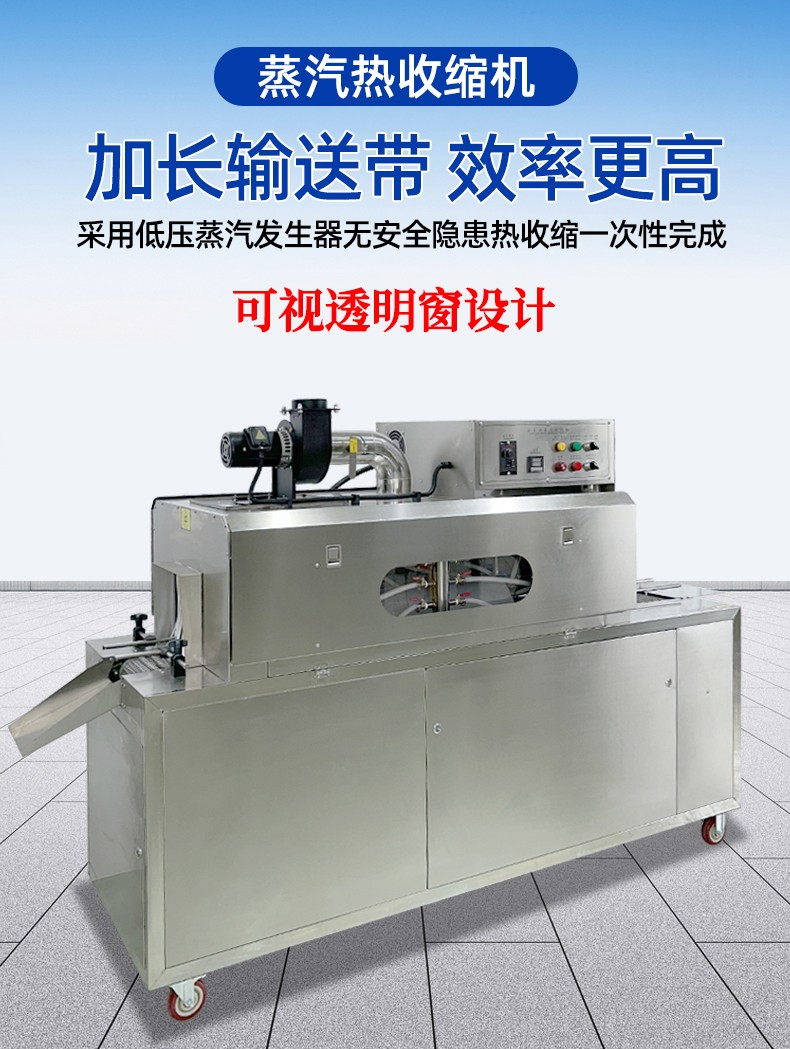 蒸汽收縮一體機是一款集蒸汽發生、產品輸送、恒溫收縮功能于一體的高效包裝設備,專為各類產品的熱收縮包裝需求設計,憑借集成化結構與精準控溫技術,成為食品、日化、五金、電子等行業的主流包裝選擇。